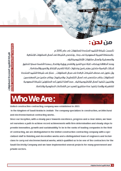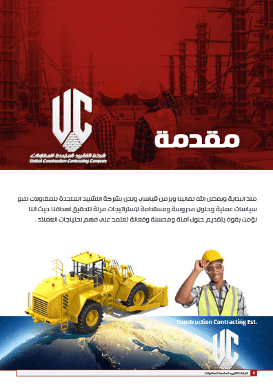 شركة التشييد المتحدة للمقاولات لقد تشرفنا في شركتنا بعمل بروفايل مميز احترافي للشركة التشييد المتحدة للمقاولات العامة مدة تنفيذ البروفايل 15 يوم عدد الصفحات 100 الصفحة لمشاهدة البروفايل كامل pdf تواصل معنا مباشر تواصل معنا الان واحصل علي خصم 50 % علي تصميم البروفايل تواصل معنا واتساب