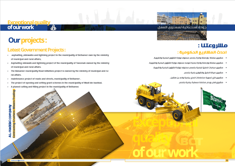 بروفايل شركة ال حدال لقد تشرفنا في شركتنا بعمل بروفايل مميز احترافي للشركة ال حدال للمقاولات العامة مدة تنفيذ البروفايل 10 يوم عدد الصفحات 45 الصفحة لمشاهدة البروفايل كامل pdf تواصل معنا مباشر تواصل معنا الان واحصل علي خصم 50 % علي تصميم البروفايل تواصل معنا واتساب